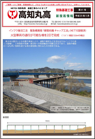 インフラ復旧工法 緊急橋開発「鋼管杭橋 キャップ工法」(NETIS登録済)