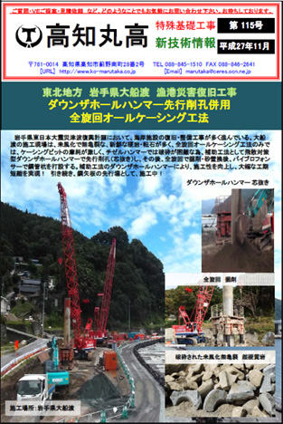 「東北地方 岩手県大船渡 漁港災害復旧工事 ダウンザホールハンマー先行削孔併用 全旋回オールケーシング工法」及び 「沖縄県 某工事にて、水陸両用作業車 フル稼働中!!」についてのご紹介!! 第115号の記事はこちら