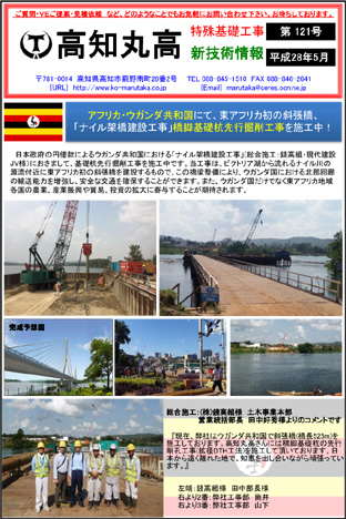 「回航不可能箇所・浅水域で威力を発揮する組立式自航艇 高知市江ノ口川河川改修工事における浚渫」及び「都市型可変式超高周波バイブロフォンサーの活躍 地震高潮第8-2号 下田川(排水機場)地震高潮対策工事」についてのご紹介!! 第121号の記事はこちら