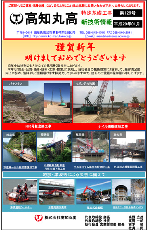 旧年中は格別のお引き立てを賜り厚く御礼申し上げます。 本年も『安全・品質・価格・技術・工期・提案』に挑戦し、当社独自の技術提案におきまして、顧客満足度向上に努め、皆様よりご信頼頂けます様努力してまいりますので、倍旧のご愛顧の程御願い申し上げます。 第129号の記事はこちら
