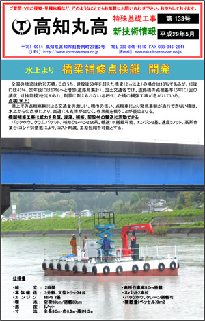 国土交通省では、道路橋の点検基準(5年に1回の頻度、近接目視)を定められ、老朽化した橋の補強工事が急がれている。この問題に注目し、弊社は『橋梁補修点検艇』を開発。についてご紹介!! 第133号の記事はこちら