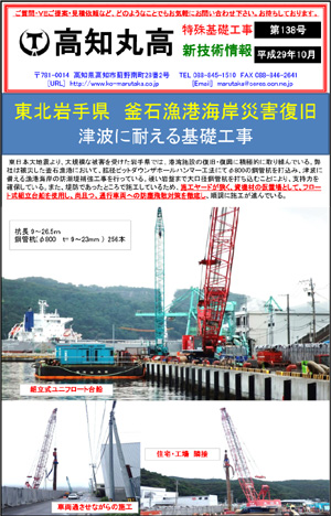 『東北岩手県 釜石漁港海岸災害復旧 津波に耐える基礎工事』 『地域 高知 の活力を支える基礎工事』 『神奈川県 新東名高速道路 秦野IC SqCピア鋼管桟橋施工中!!』についてのご紹介!! 第138号の記事はこちら