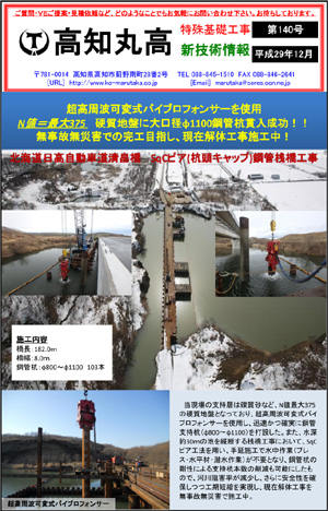 北海道特集として、『北海道 日高自動車道清畠橋及び室蘭仮橋連絡橋設置工事において、2件のSqCピア鋼管桟橋工事が無事故無災害で完工しました。』 『N値=最大375の硬質地盤で、現在解体引抜工事が順調に進んでいます。』について、北海道での施工中工事のご紹介!! 第140号の記事はこちら