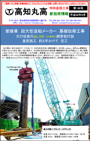 『愛媛県 超大型造船メーカー 基礎改修工事 大口径長尺φ1100 L=44m鋼管杭打設 昼夜施工 約2年かけて完工』 『徳島県 広島護岸災害復旧工事 バイブロフォンサー(起振力160t)で大口径長尺φ800~φ900 L=45.5m鋼管杭 海上打設工事完工』についてのご紹介!! 第148-1号の記事はこちら